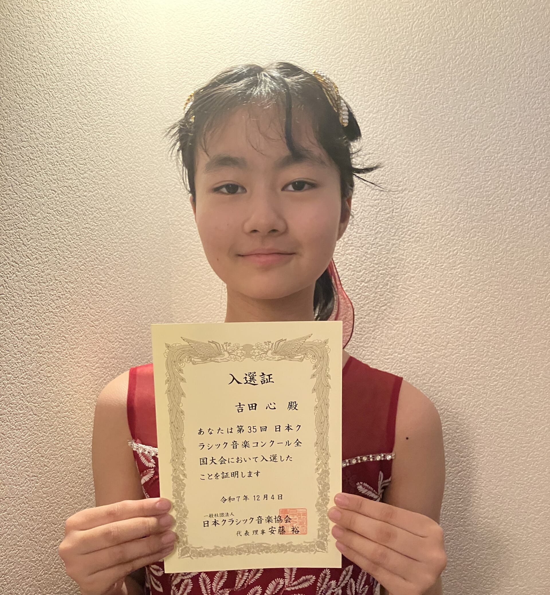 毎日新聞社主催全日本学生音楽コンクール東京大会 ヴァイオリン部門小学生の部 入選 |